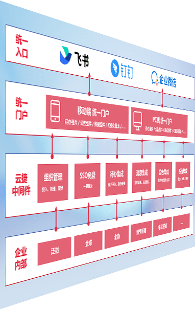 对协作平台提供支持服务,,,,支持企业应用与协作平台对接,,,,包含组织同步、、、、消息集成、、、待办集成等。。。。支持目前主流的协作平台:钉钉、、企微和飞书。。。
